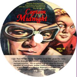 39/12/25 216 Falling Into Shark's Deadly Plan 39/12/26 217 A Plan to Thwart a Plan 39/12/27 218 Juan and Patsy Voice Concern over Captain And Chuck 39/12/28 219 Taken Prisoner by Lutro and Von Grif 39/12/29 220 Captain Midnight Leads Attack of Hacienda 40/01/01 221 The Hacienda is Ours! 40/01/03 222 An Amazing Discovery 40/01/05 223 The Treasure Has Disappeared 40/01/08 224 Shark's Secret Landing Field 40/01/10 225 An Early Morning Talk 40/01/12 226 A Mysterious Cry For Help 40/01/15 227 Where's The Voice Coming From? 40/01/17 228 Patsy Spots a Broken Airplane Wing 40/01/19 229 Bud Must Go To The Hospital - Now! 40/01/22 230 Captain Has A Plan 40/01/24 231 Smoke Floating Over Nearby Ridge 40/01/26 232 Chuck Asks Mr Gillis for Dynamite 40/01/29 233 Dynamiting the Trees 40/01/31 234 Chuck Successfully Takes Off 40/02/02 235 After A Good Nights Sleep - Surprise! 40/02/05 236 On Their Way To See Chuck 40/02/07 237 Captain and Patsy Discuss Chuck's Disappearance 40/02/09 238 Chuck Last Seen With Mysterious Stranger 40/02/12 239 What Did Chuck Do? 40/02/14 240 Chuck Arrested By Government Man 40/02/16 241 Chuck and Frank Land To Investigate Strange Plane 40/02/19 242 Plans to Search For Chuck 40/02/21 243 Imprisoned In Shark's Plane 40/02/23 244 A Smugglers Shack 40/02/26 245 Captain Believes No-one In Charge of Chuck's Plane 40/02/28 246 Chuck Learns Sharks Sinister Plan 40/03/01 247 Shark Sends a Telegram to Captain Midnight 40/03/04 248 The Telegram 40/03/06 249 Chuck Talks To Shark Aboard Shark's Plane 40/03/08 250 Captain Demands to Hear Chuck's Voice 40/03/11 251 Chuck Will Talk To Captain Midnight Tonight 40/03/13 252 Shark Issues An Ultimatum 40/03/15 253 Shark Tells Fury His Plans 40/03/18 254 Shark Demands Answer Within 24 Hours 40/03/20 255 Chuck Gets Disturbing News 40/03/22 256 Flying To Point of Shark's First Broadcast 40/03/25 257 Chuck Transmits Secret Message 40/03/27 258 Disappointing News For Captain Markham 40/09/30 1 Origin - 1st Mutual Broadcast 47/04/21 We Who Are About To Die 47/05/14 Stolen Star 48/03/12 1 The Jewels Of The Queen Of Sheba 48/03/19 2 The Jewels Of The Queen Of Sheba 48/03/26 3 The Jewels Of The Queen Of Sheba 49/01/10 Secret Submarine Base