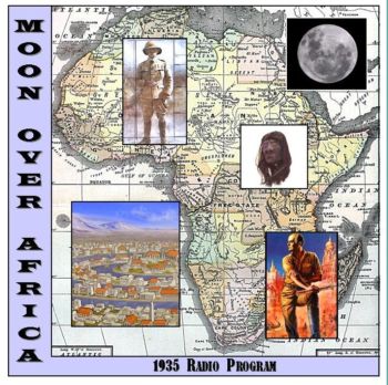 _____________________________________MOON OVER AFRICA, a syndicated serial featuring 15-minute episodes.follows the exploits Professor Anton Edwards on his search for Atlantis, in the depths of the African jungle. Along with him on his search are his daughter, her fiance, and a preserved human head that babbles in a foreign tongue that only their african guide can decipher. All this makes for an unusual adventure. The serial was broadcast sometime during 1937 to 1938. The source of the series is unknown, but may possibly be from South Africa. It is not known if the series was actually broadcast in the US. 35/03/16 1 The Talking Head 35/03/23 2 The Atlantis Quest 35/03/30 3 Jungle Trance 35/04/06 4 The Sacred Python 35/04/13 5 The Rhinoceros Hill 35/04/20 6 Captured by Cannibals 35/04/27 7 Escape 35/05/04 8 A New Land 35/05/11 9 Inside the Volcano 35/05/18 10 Prisoners in the Palace 35/05/25 11 Sacrificed 35/06/01 12 Revolution 35/06/08 13 The Secret of the Talking Head 35/06/15 14 Passage of the Rock 35/06/22 15 Witch Woman of the Rock 35/06/29 16 Back to the Jungle 35/07/06 17 The Eyes of the Moon 35/07/13 18 The Leopard Cult 35/07/20 19 Leopard Woman 35/07/27 20 The Devil Doll 35/08/03 21 White Magic 35/08/10 22 Native Revenge 35/08/17 23 Whispering Forest of Death 35/08/24 24 Treachery 35/08/31 25 The Orchids of Death 35/09/07 26 The Treasure of the Ancients _____________________________________